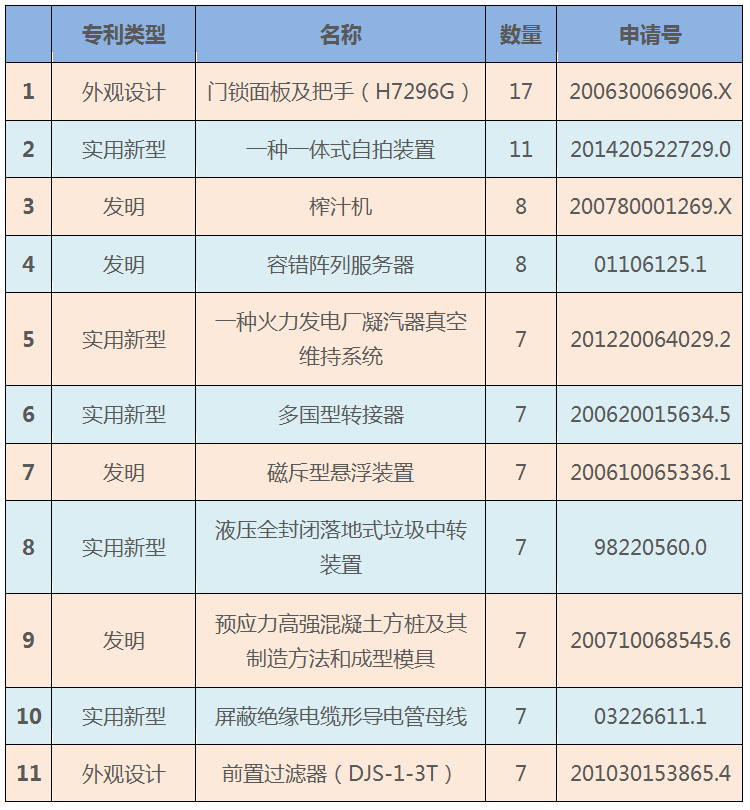 专利被无效宣告请求的次数较多,一般说明专利稳定性较好(否则会被轻易无效)且具有较高价值(否则不会被多次请求无效)。 在被无效宣告请求次数最多的专利中,与发明专利相比,实用新型、外观设计的占比并不少。可见,撰写水平高的实用新型、外观设计专利对专利权人的价值并不小于发明专利。