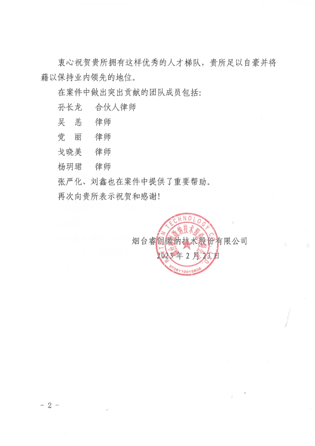 最后,感谢睿创集团知识产权团队对于本案的积极贡献,以及对于88体育的支持与信任,共同成就恶意诉讼案的最终胜利!
