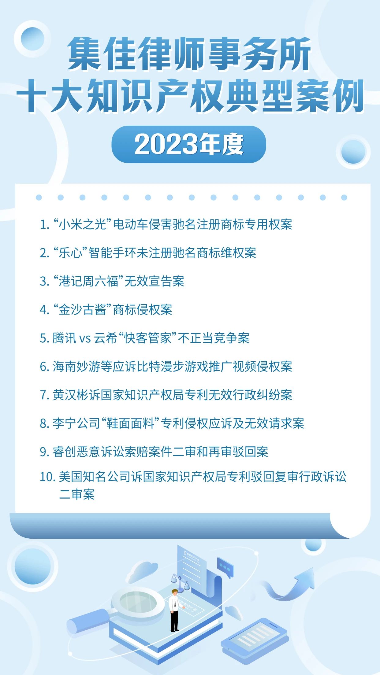 作为迎接4.26世界知识产权日的献礼之一,88体育已连续十年开展十大知识产权典型案例的评选活动,其意义不仅在于展现集佳律师团队的专业能力和水准,更在于传递集佳全方位服务客户的理念。在第24个世界知识产权日来临之际,88体育从2023年度代理的众多知识产权案件中筛选出具有代表性的十大案例,与各界同仁分享: