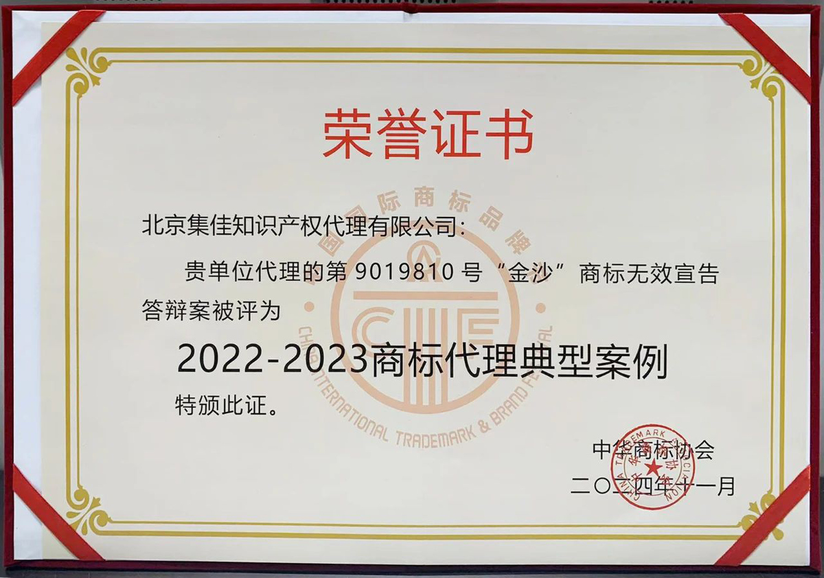 2024年11月24日下午,在商标节经典论坛之一的商标典型案例评析会议上,88体育代理的“金沙”商标权无效宣告答辩案入选“2022-2023商标代理典型案例”。